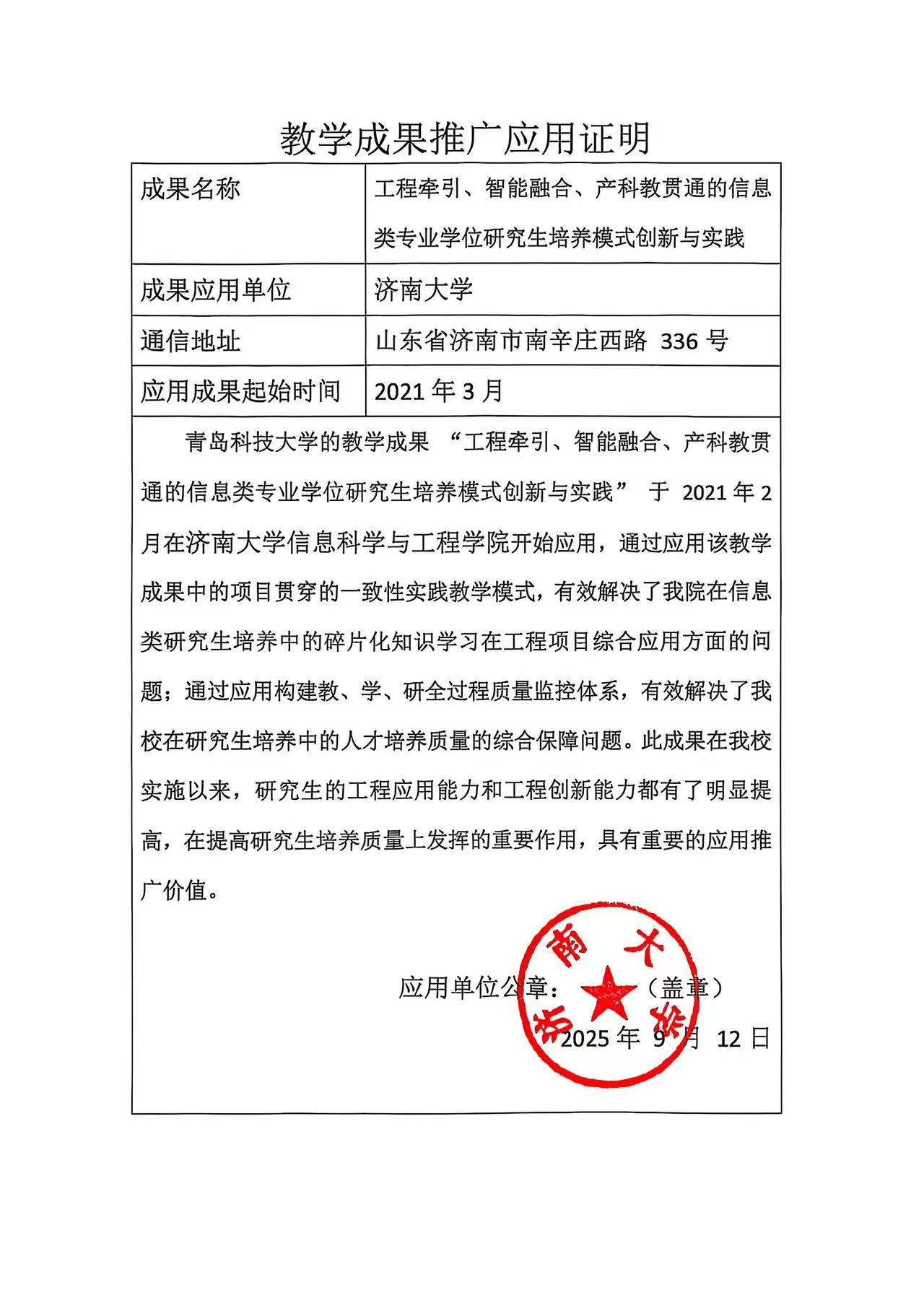 成果推广——济南大学